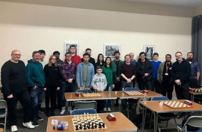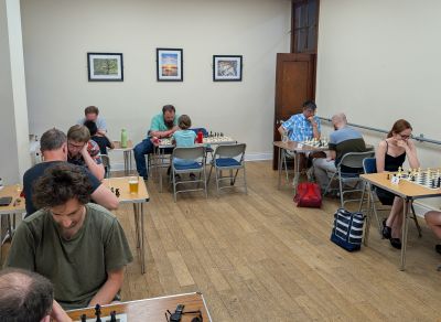 Charlton looked to be winning the match comfortably but a couple of wins slipped away in the quick-play finish and the final score was 3 points all, Charlton winning on board count.