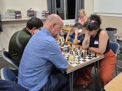 Charlton looked to be winning the match comfortably but a couple of wins slipped away in the quick-play finish and the final score was 3 points all, Charlton winning on board count.